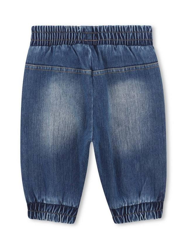 Трикотажные джинсовые брюки из эластичной хлопковой смеси. Эластичный пояс, имитация гульфика, передние карманы и фирменная этикетка.