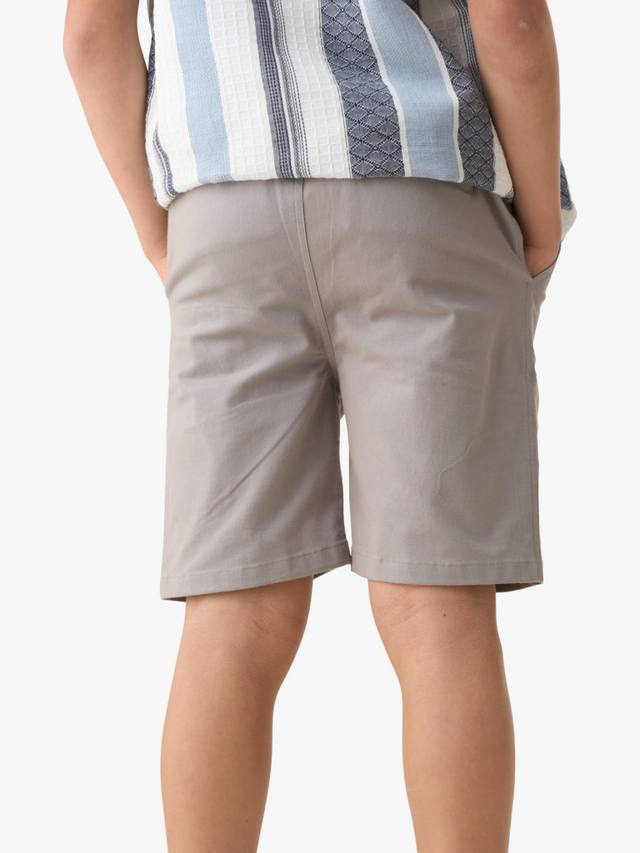 Эта пара, переосмысленная классическая модель шорт-чинос A&R, выполнена из мягкого хлопкового твила нейтрального серого оттенка. Эластичный пояс обеспечивает лёгкость надевания и идеально сочетает комфорт и стиль на любой случай.