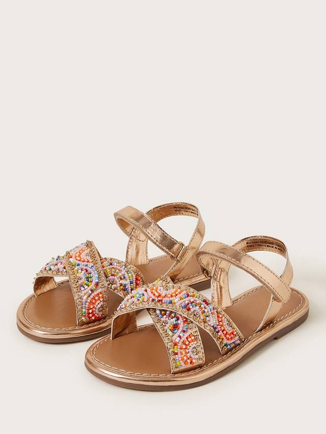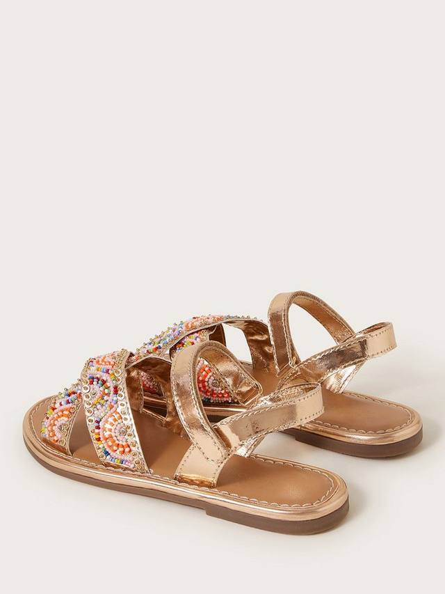 Эти металлические сандалии украшены яркими бусинами и оснащены легко надеваемыми ремешками-липучками.
