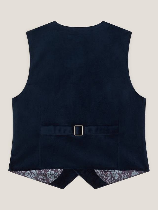 Этот жилет идеально подходит для ношения поверх рубашки. Он застегивается на три пуговицы по центру и имеет регулируемую пряжку сзади для плотной посадки.