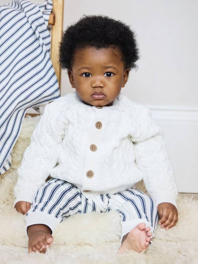 Этот красивый фактурный детский кардиган с косичной вязкой изготовлен из 100% супермягкого хлопка. Это вневременная вещь, идеально дополняющая детский гардероб.
