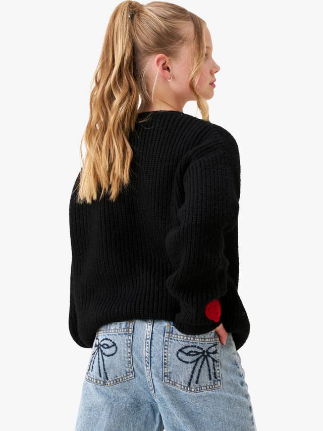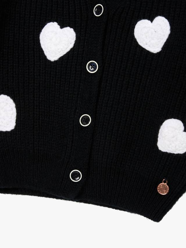 Вышитые крючком кремовые сердечки – идеальное сочетание уюта и стиля. Толстая вязка делает этот свитер идеальным многослойным предметом гардероба, чтобы оставаться стильным в прохладные месяцы. Модель с V-образным вырезом и свободными рукавами.