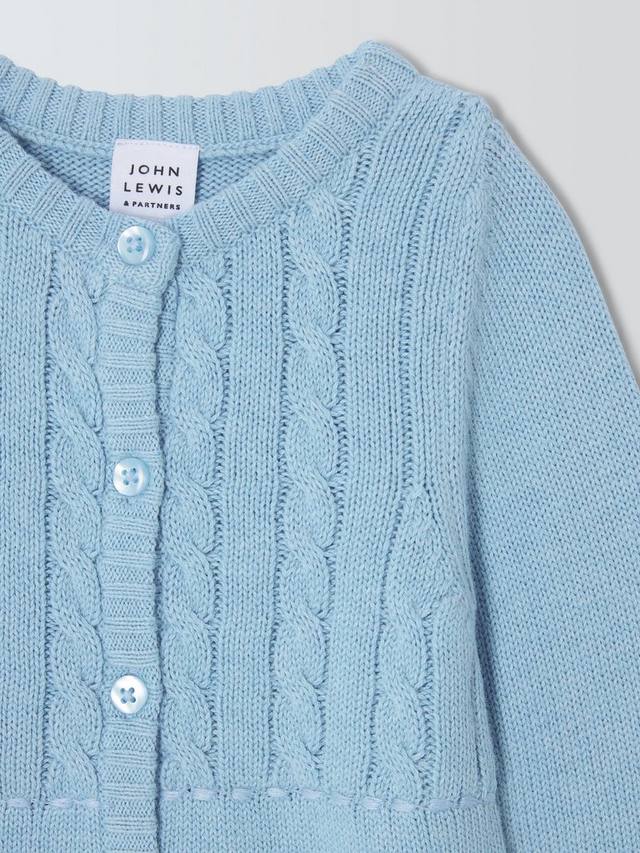 Этот комбинезон на пуговицах, связанный из чистого хлопка, не раздражает детскую кожу, имеет переднюю часть с косичным швом и ребристые манжеты.