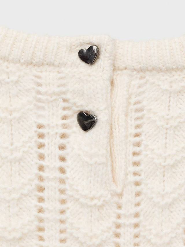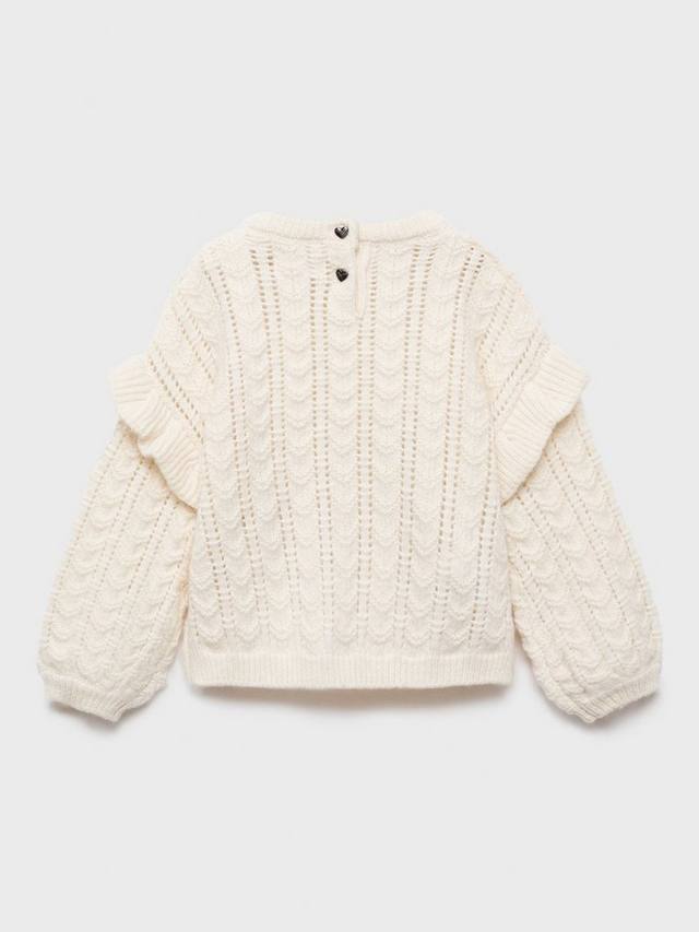 Мягкая вязка свободного кроя для непринужденного стиля. Эта модель с длинными рукавами, украшенная пуговицами в форме сердца, оборками на плечах и изысканной вязкой крючком на вырезе, станет очаровательным дополнением к вашему повседневному гардеробу.