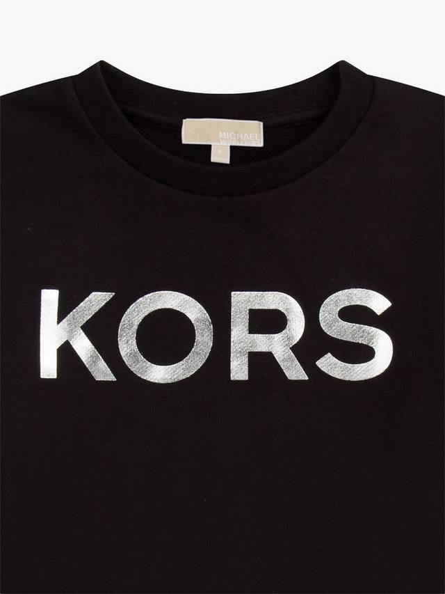 Толстовка из французского трикотажа с элегантной резинкой на горловине, манжетах и по низу, а также культовым металлическим принтом логотипа KORS спереди.