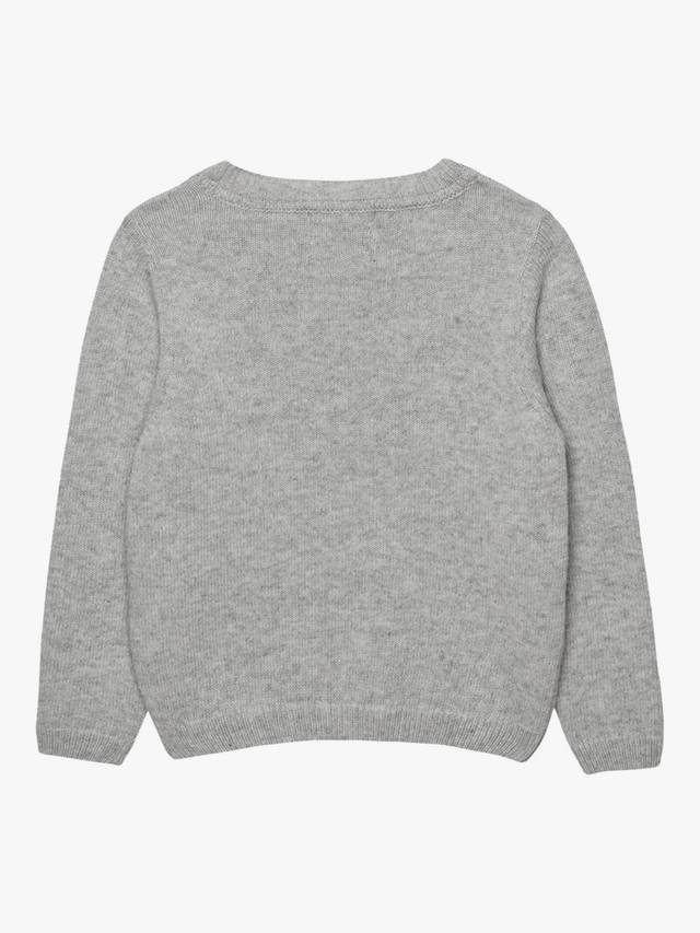 Этот джемпер из мягкой и тёплой кашемировой смеси на фоне шикарного серого меланжевого цвета украшен замысловатым узором в технике интарсии, парящим спереди. Он, несомненно, поможет ребёнку достичь новых высот и снова станет частью его гардероба.
