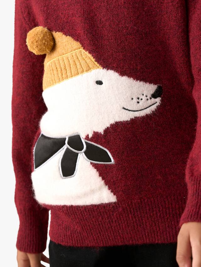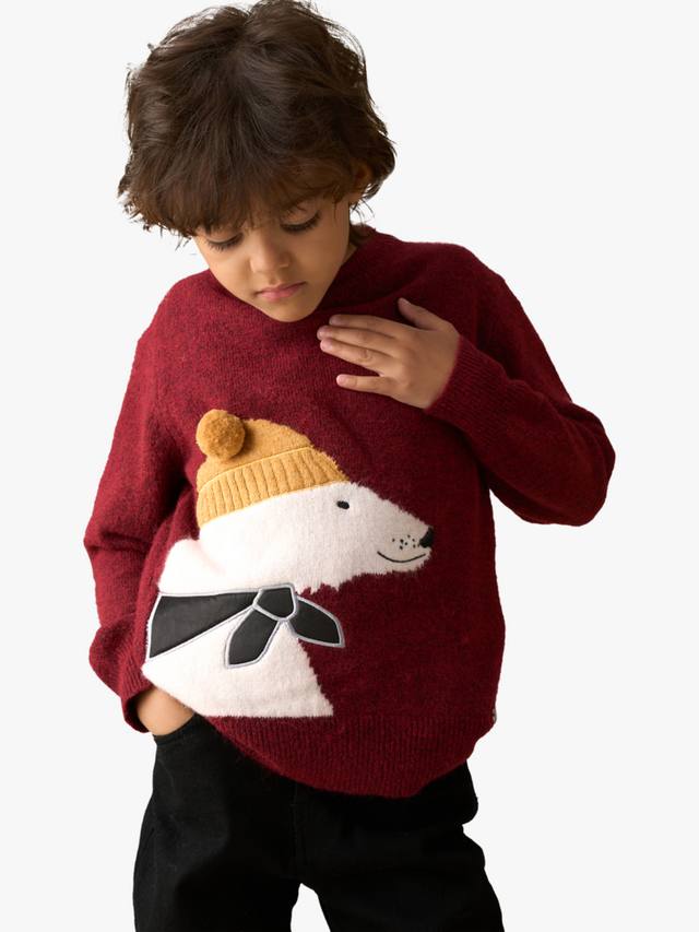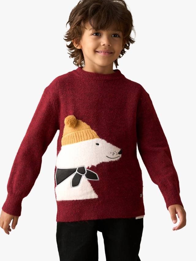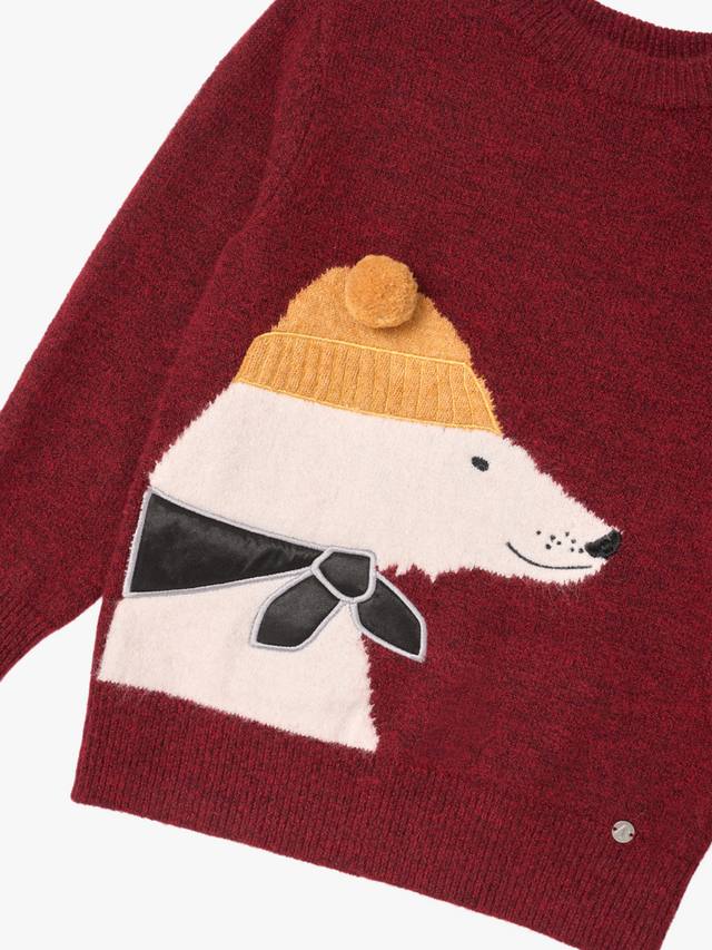Сделанный из супермягкого бордового трикотажа с очаровательным белым медведем в шапочке с помпоном, этот свитер станет идеальным спутником в прохладную погоду. Идеальный свитер для морозных приключений.