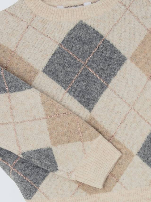 Вязаный свитер с круглым вырезом и винтажным ромбовидным принтом — идеальное дополнение к вельветовым брюкам и ботинкам.