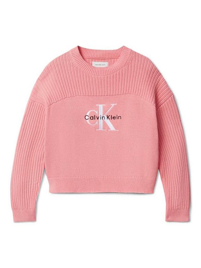Джемпер классического кроя из плотного расчесываемого хлопка с контрастной рубчатой текстурой на плечах и рукавах. На груди вышит монограммный логотип Calvin Klein.