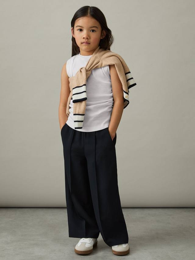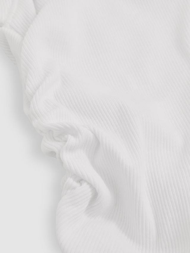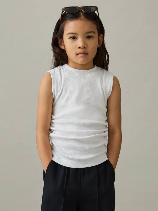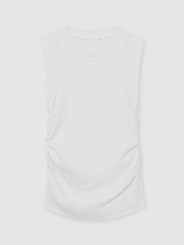 Топ-майка Trudy из тонкой рубчатой ткани украшена мягкими сборками по бокам для дополнительной фактуры. Классический круглый вырез горловины создаёт классический образ.