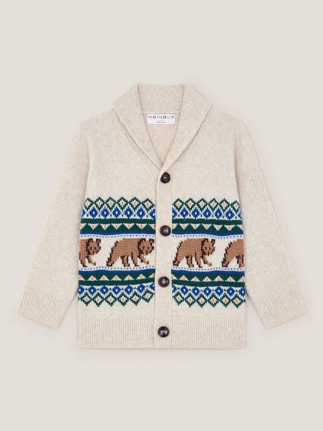 Детский кардиган с узором Fair Isle в виде медведей Monsoon, Ivory