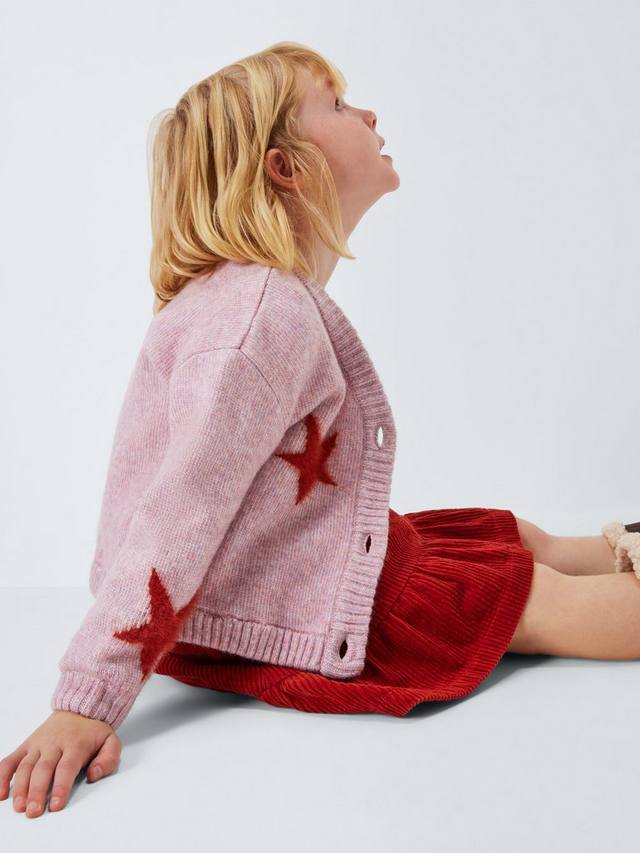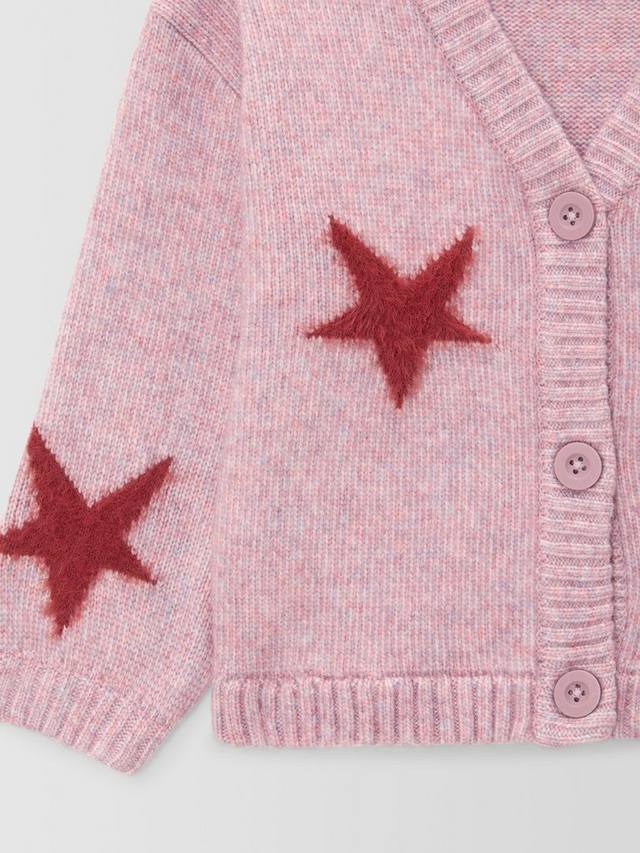 Этот кардиган с V-образным вырезом и звездным передом выполнен из приятного трикотажа.