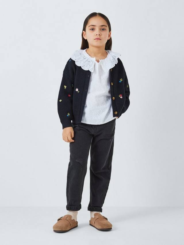 Этот милый и уютный, теплый кардиган выполнен из толстой пряжи с вышитыми милыми цветами.