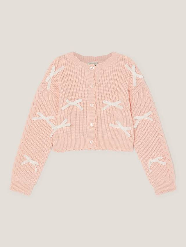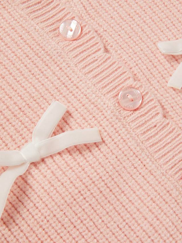 Этот кардиган от Monsoon, украшенный милыми бантиками, связан из мягкой ребристой пряжи, имеет фестончатый вырез горловины, длинные рукава и застежку на пуговицы спереди.