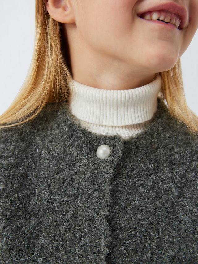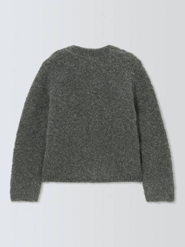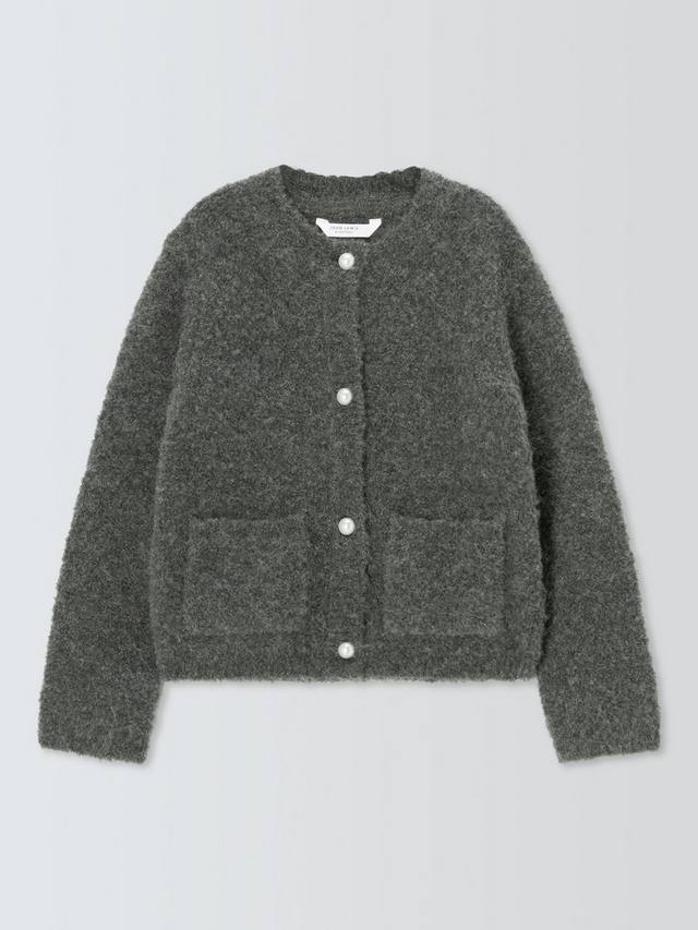 Пушистый вязаный кардиган с пуговицами из искусственного жемчуга и накладными карманами.