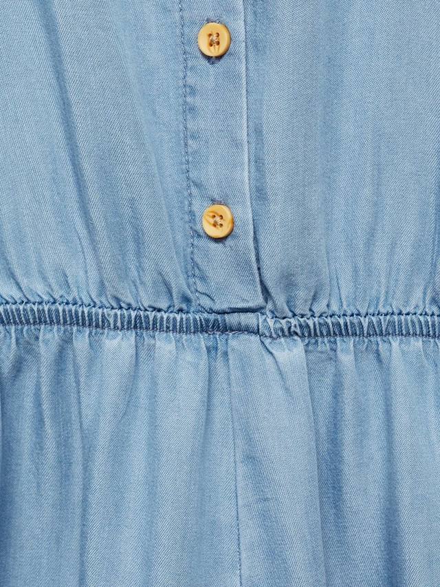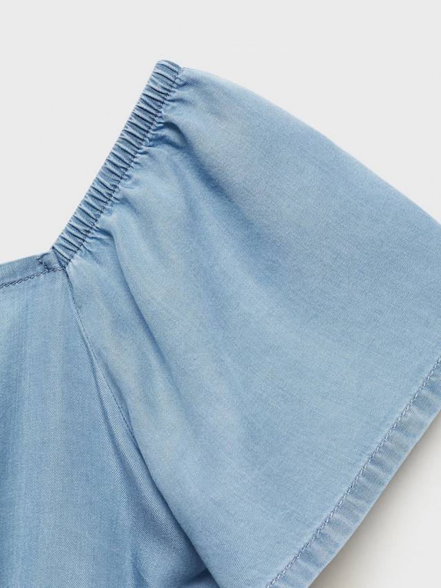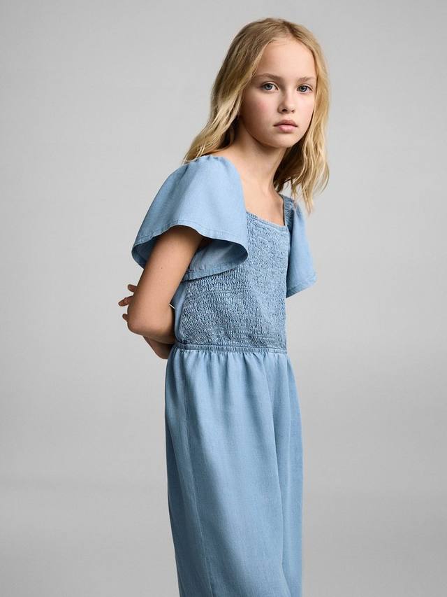 Милый комбинезон от Mango с рюшами, квадратным вырезом, короткими рукавами и пуговицами под дерево. Эластичный пояс для дополнительного комфорта.
