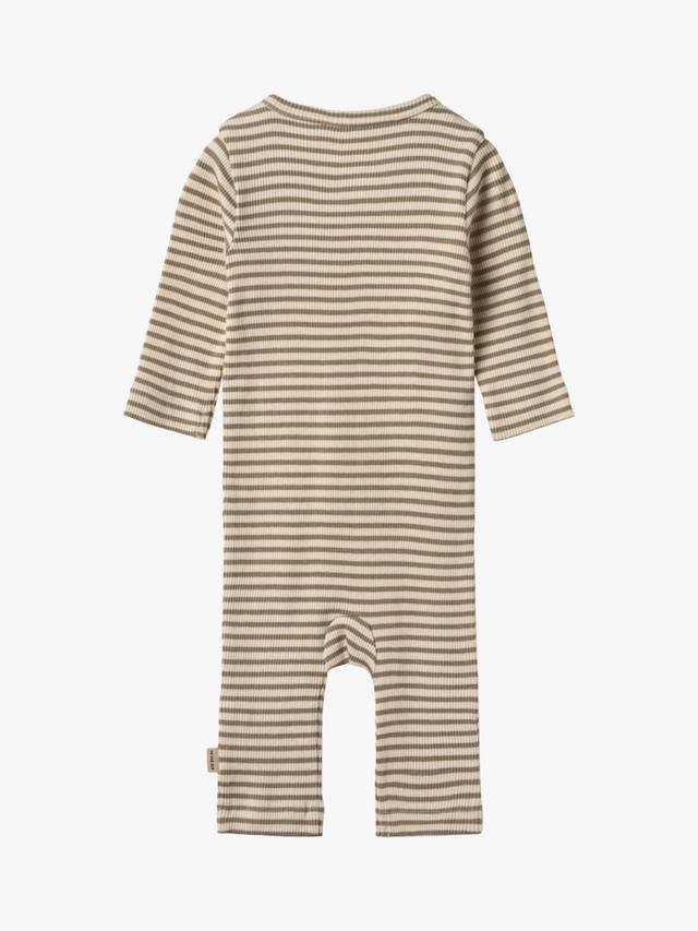 Комбинезон-обертка с длинными рукавами и полосками из мягкого органического хлопка для малышей. Крой от стандартного до свободного. Застежка на кнопки крест-накрест спереди и вдоль передней части штанины.