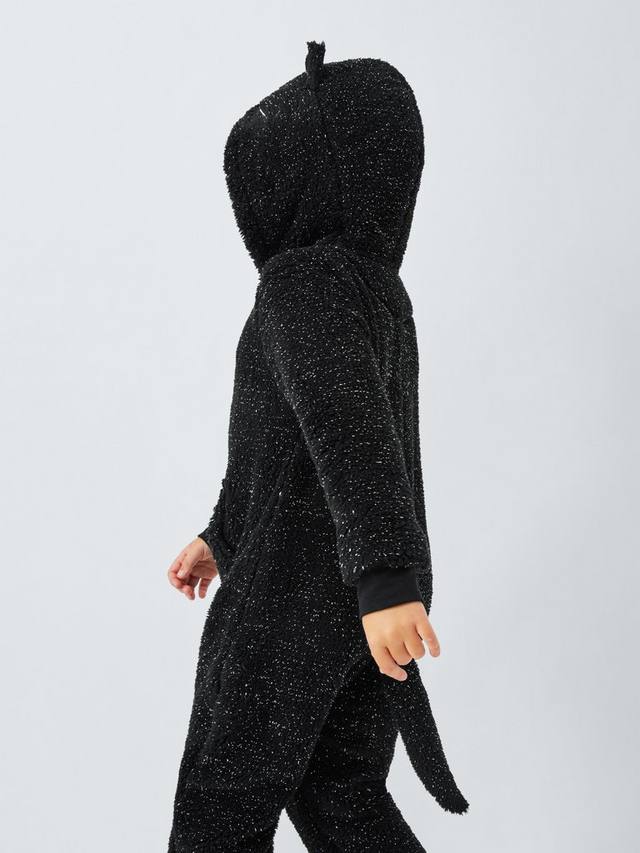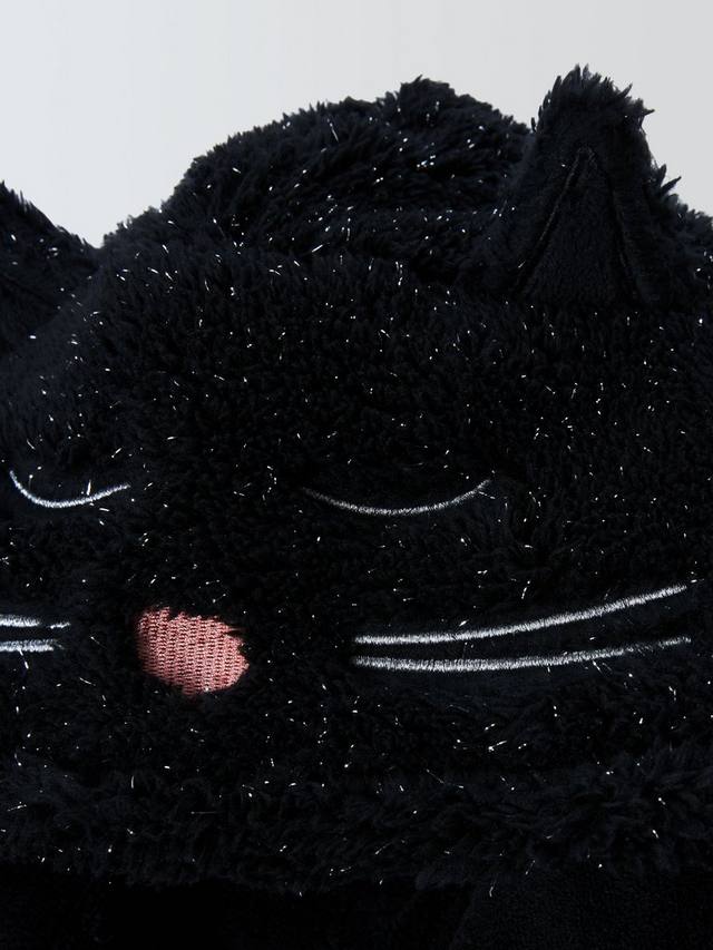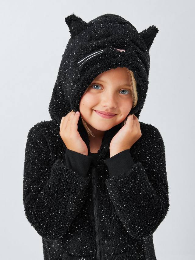 Мягкий, тёплый и совершенно очаровательный комбинезон в форме кота с усами на капюшоне и блестящим мехом. Ребристые манжеты обеспечивают отличную посадку и защищают от холода.