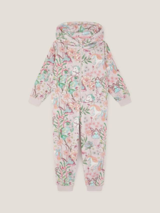 Этот комбинезон, созданный для того, чтобы дети чувствовали себя уютно и комфортно, украшен очаровательными единорогами, феями, бантами и цветами. Дополнен капюшоном, ребристыми окантовками и застежкой-молнией спереди.