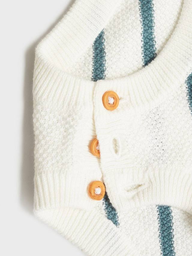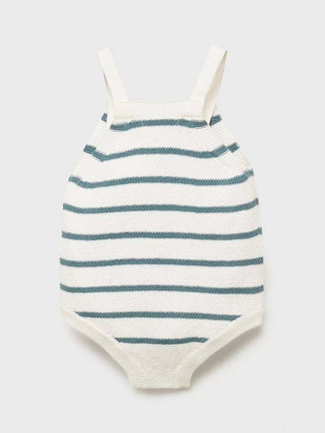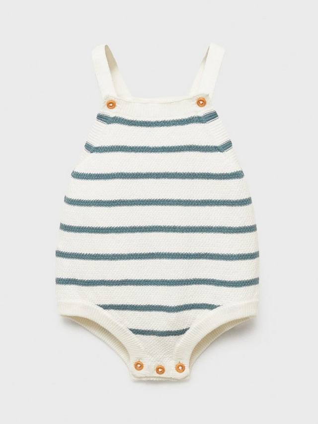Этот удобный комбинезон из тонкого хлопкового трикотажа имеет полоски по всей поверхности, застежки на пуговицы с имитацией дерева и квадратный вырез.