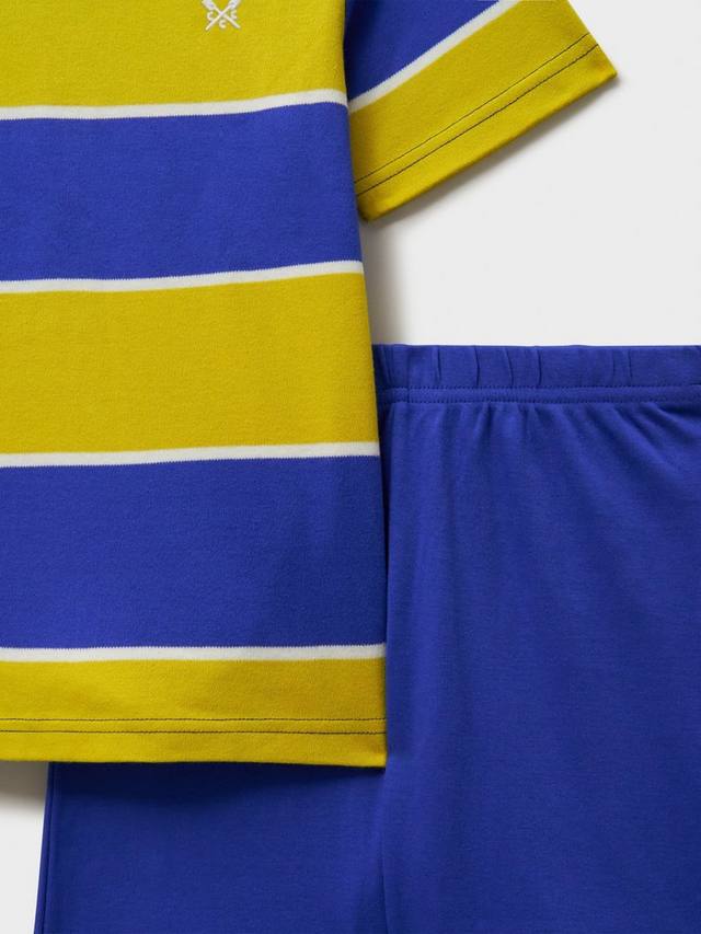 Пижама в полоску, состоящая из футболки с короткими рукавами и шорт. Идеально подходит для крепкого сна. Она сшита из мягкого эластичного трикотажа и легко надевается благодаря эластичному поясу. Сладких снов.