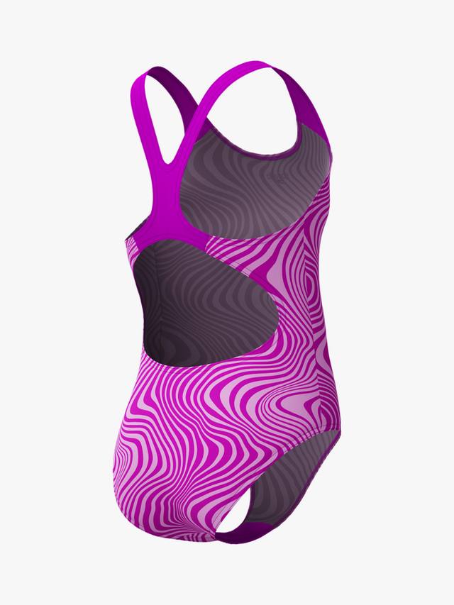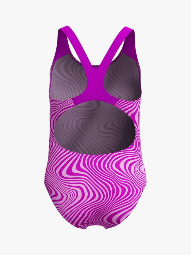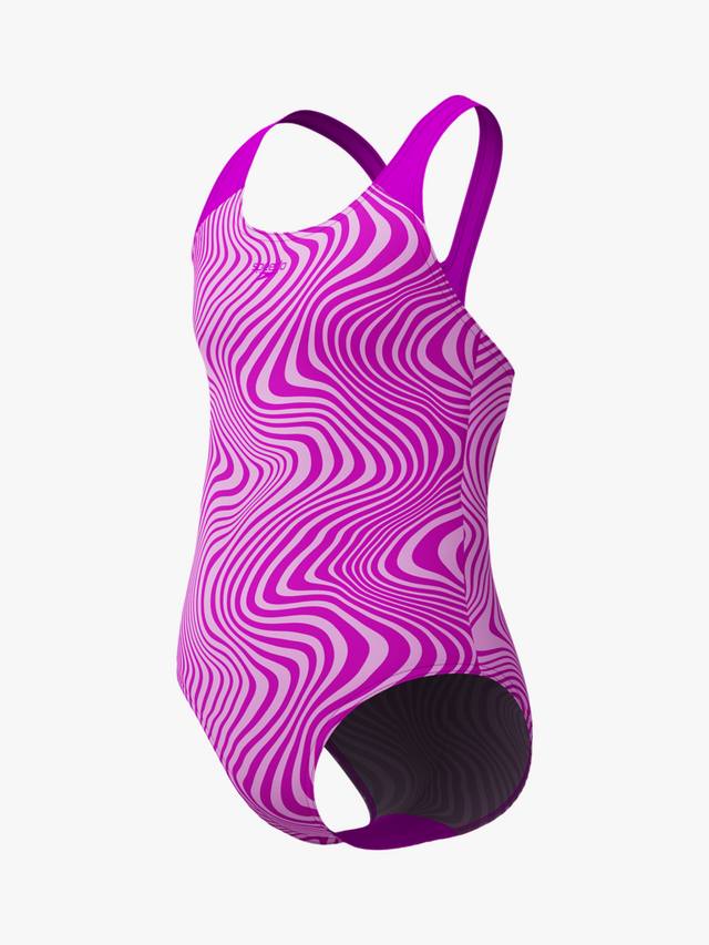 Этот купальник с головокружительным принтом с эффектом ряби идеально подходит для активных детей. Удобные бретельки Splashback смещены от плеч для большей подвижности. Купальник изготовлен из ткани Enduraflex, устойчивой к образованию катышков, которая сохраняет форму и обладает повышенной устойчивостью к воздействию хлора.