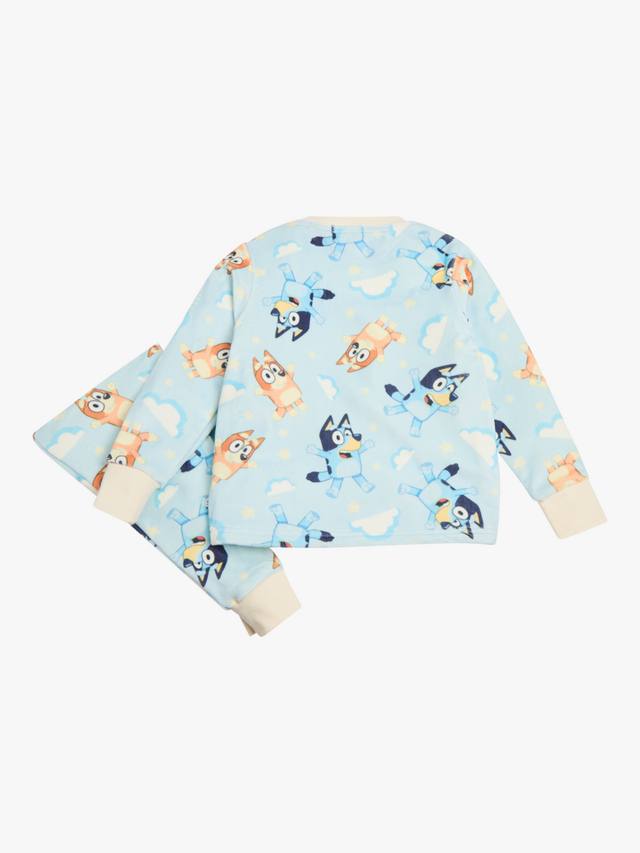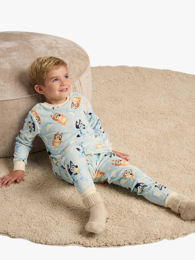 Этот уютный пижамный комплект из супермягкого флиса, несомненно, порадует юных поклонников жизнерадостного Блюи. Верхняя часть и соответствующие брюки идеально подходят для отдыха в зимние выходные. Они украшены принтами Блюи и Бинго и дополнены манжетами на запястьях и щиколотках.