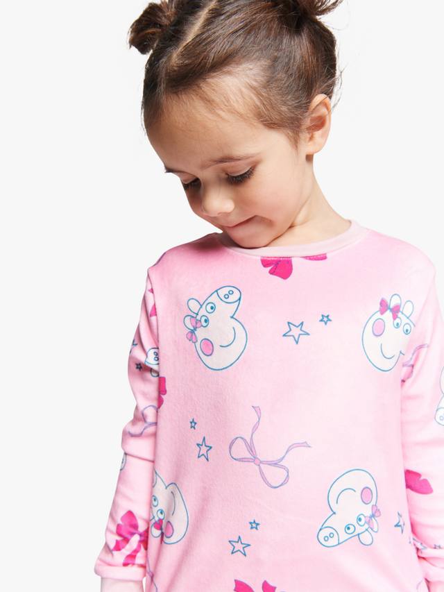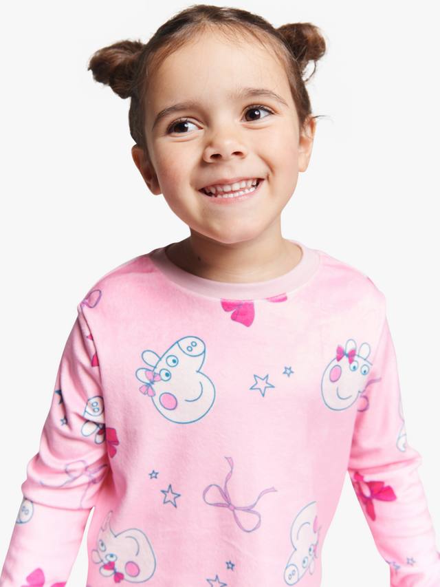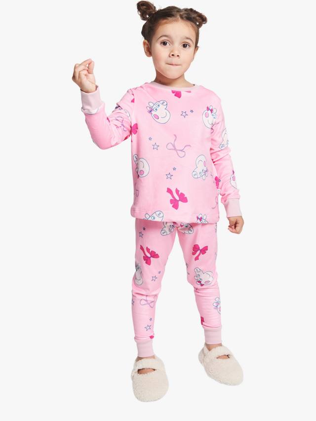 Изготовленный из мягкого хлопкового трикотажа, этот пижамный комплект состоит из верха с длинными рукавами и низа в тон, украшенных игривыми принтами Peppa Pig.