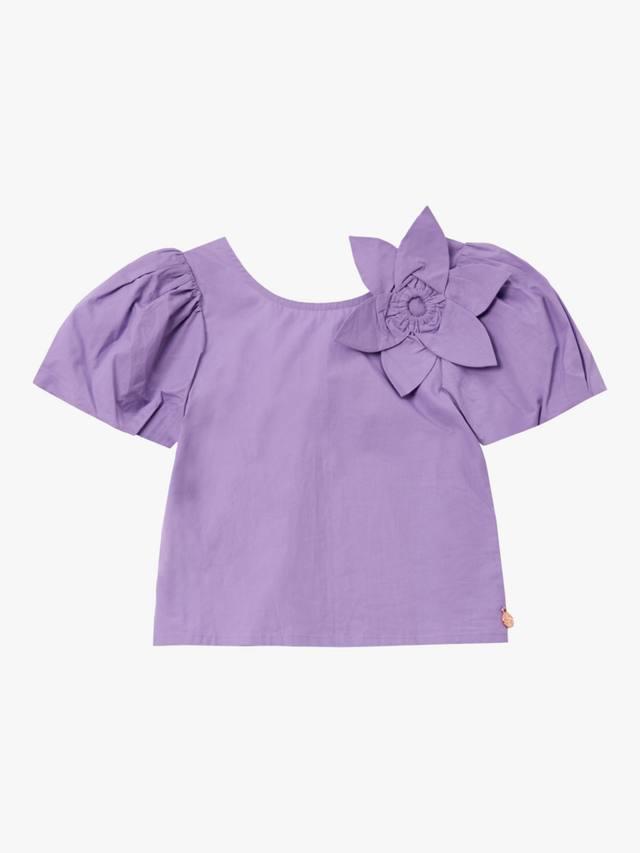 Этот фиолетовый топ с корсажем — просто ОБЯЗАТЕЛЬНЫЙ выбор для начинающих модниц! Изготовленный из мягкого хлопка, он отличается эффектными рукавами-буфами и эффектным объемным корсажем на плече. Сочетайте его с юбкой в тон, чтобы создать идеальный образ.