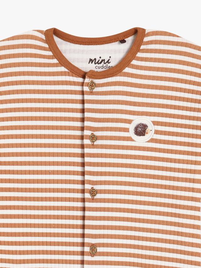 Этот полосатый комбинезон с длинными рукавами выполнен из супермягкого 100% хлопка BCI в рубчик и обеспечивает дополнительный комфорт и идеальную посадку по фигуре вашего малыша. Очаровательная вышивка в виде ёжика и карман на груди добавляют игривости, а подворачивающиеся манжеты увеличиваются по мере роста малыша. Пуговицы под дерево спереди позволяют легко надевать комбинезон, сочетая практичный дизайн с милыми деталями.
