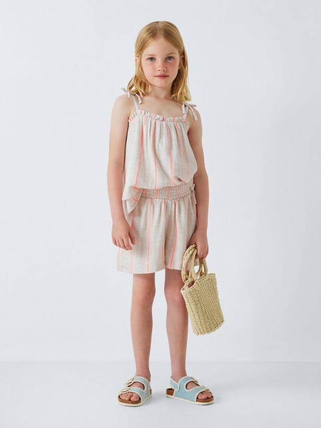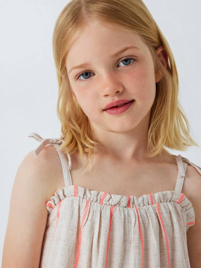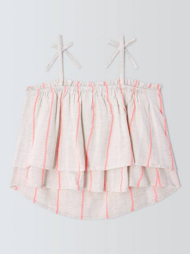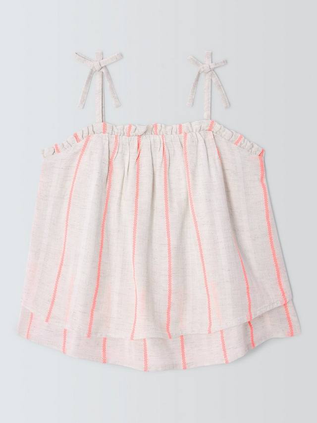 Этот лёгкий топ со свободным кроем в полоску станет идеальным дополнением к летнему гардеробу. Многослойная отделка добавляет текстуру, а отделка в виде банта на бретельках — модный штрих.