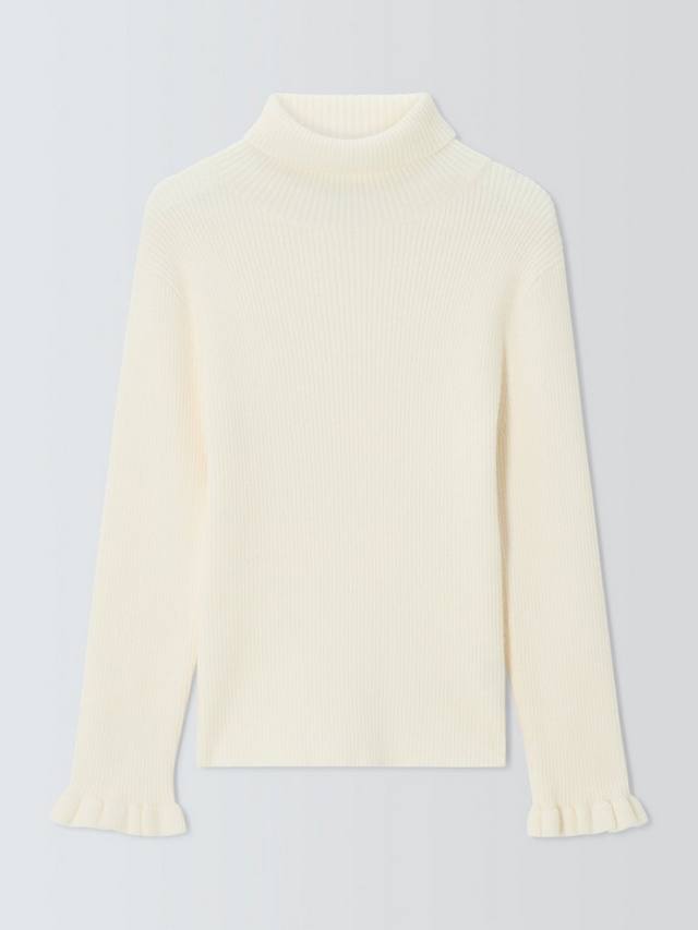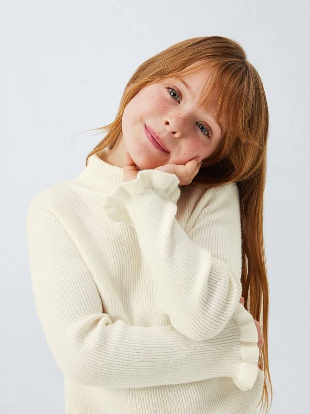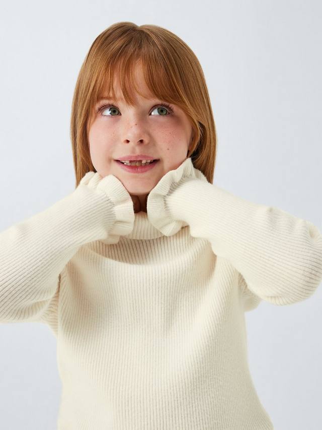 Топ в рубчик, готовый к комбинированию, с согревающим отложным воротником и фактурными манжетами с воланами.