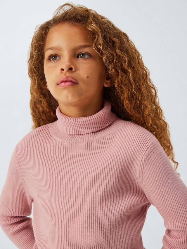 Детский ребристый свитер с высоким воротником John Lewis, Pink