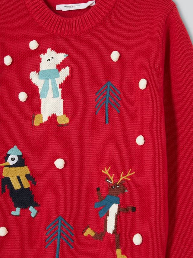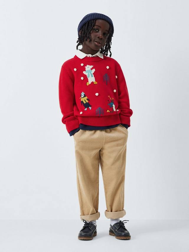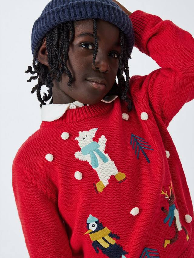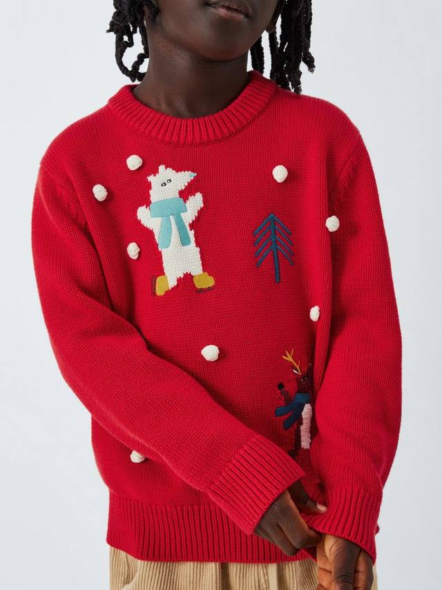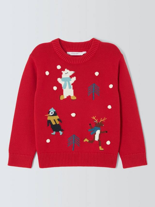 Трио веселых друзей резвится на этом уютном джемпере из чистого хлопка с круглым вырезом.