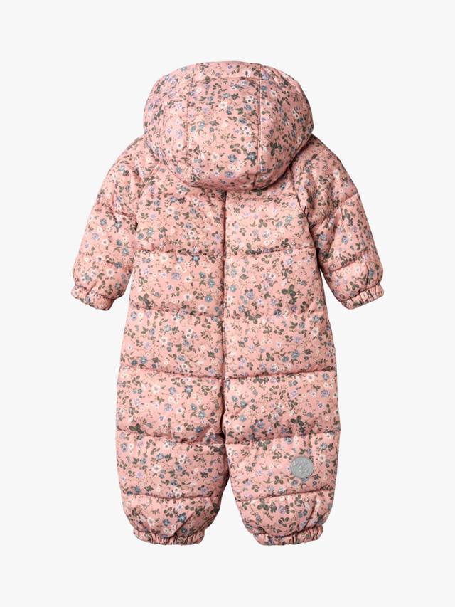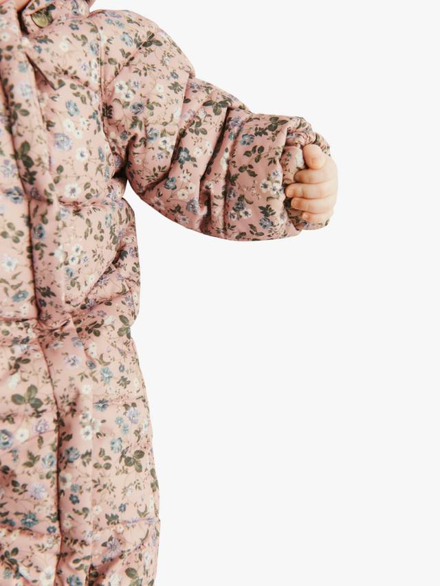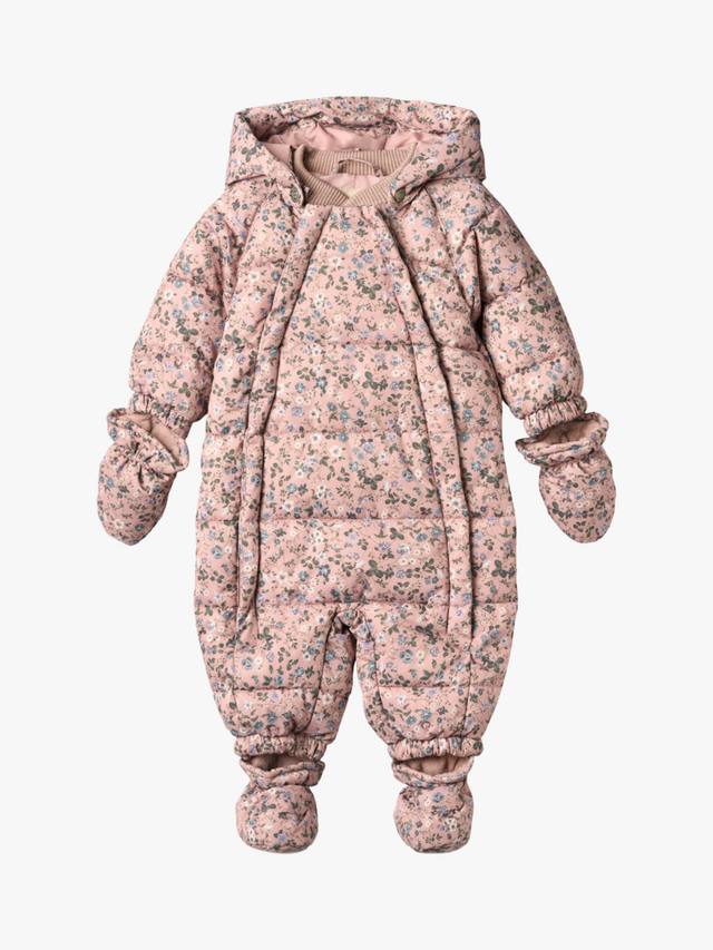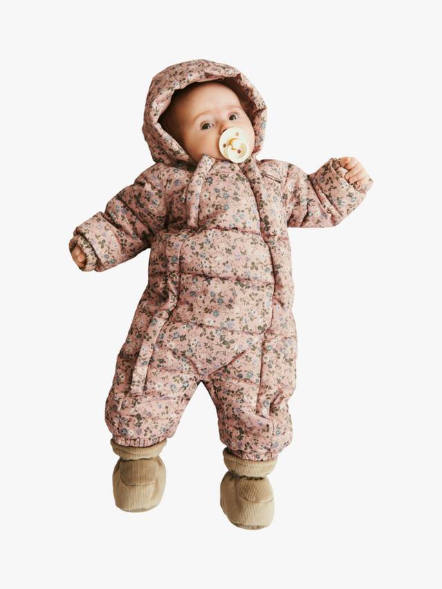 Пуховой комбинезон с принтом, отстегивающимся капюшоном, потайной молнией, воротником в рубчик и эластичными манжетами/низом штанин. Украшен светоотражателями и фирменным принтом Wheat. Водо- и ветроустойчивый материал с технической подкладкой для тепла. Варежки и пинетки продаются отдельно.