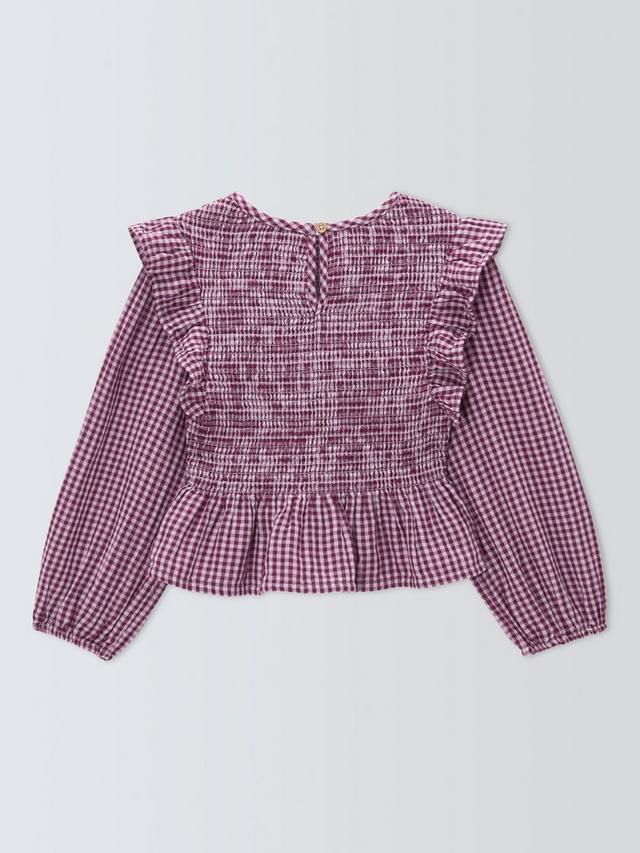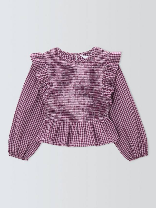 Эта блузка в клетку в стиле гингем, обрамленная баской, дополнена оборками на плечах и сборками на груди. Просто добавьте джинсы и ботинки.
