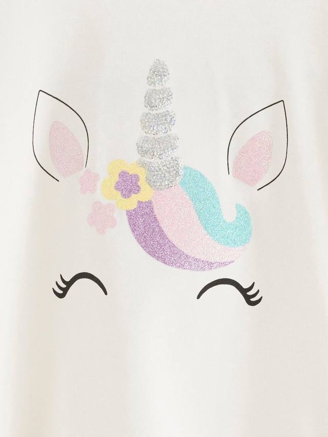 Детский топ с длинным рукавом с единорогом Lindex, Light Dusty White