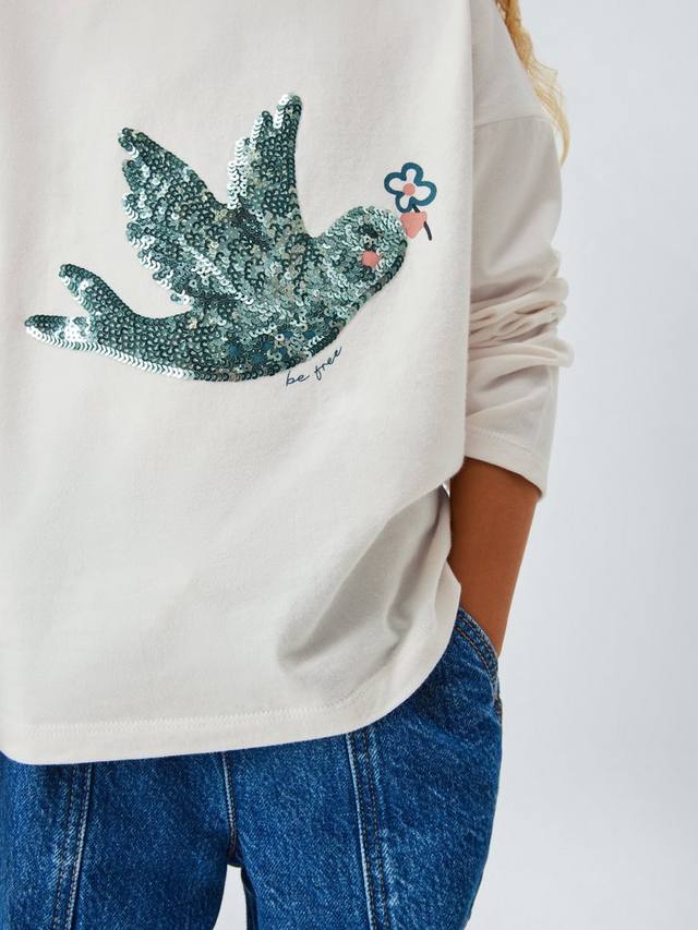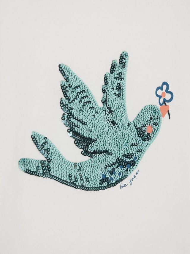 Эта птица, украшенная потрясающими пайетками, парит высоко на топе из чистого хлопкового джерси.
