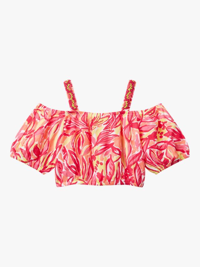 Этот яркий топ от Benetton, стильный и универсальный, сочетает в себе красочный принт с листвой и удобную посадку. Он идеально дополнит любой гардероб, добавив летнее настроение. Бретели украшены отделкой из бисера.