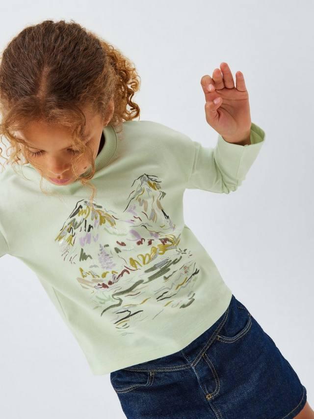 Эта блузка с длинными рукавами, украшенная красивым пейзажным рисунком в стиле мазков кисти, изготовлена из 100% хлопкового трикотажа.
