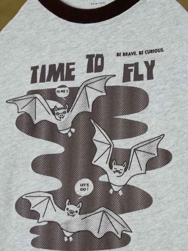 Эта футболка с рукавами реглан и забавным графическим принтом в виде летучей мыши изготовлена из 100% приятного на ощупь хлопка.