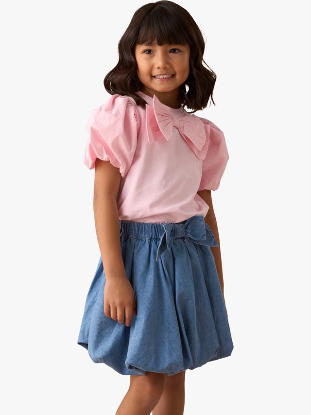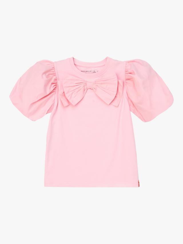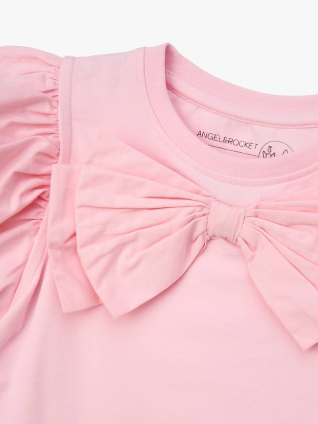 Самая милая футболка, которую вы когда-либо видели. Супермягкий хлопковый трикотаж нежно-розового цвета с милым плетеным рукавом-буфом и большим бантом.