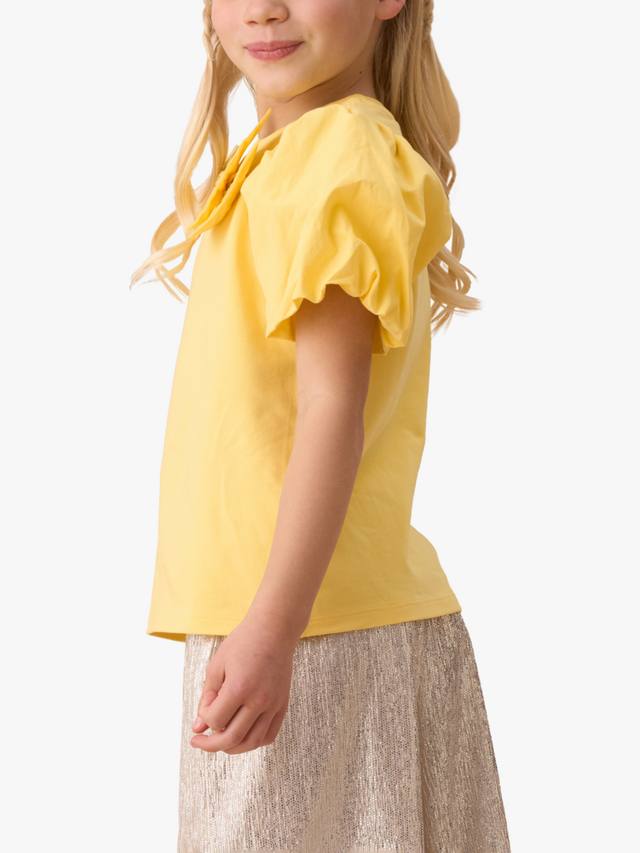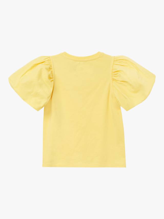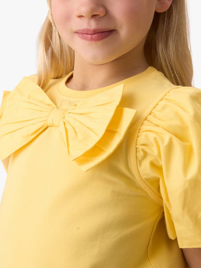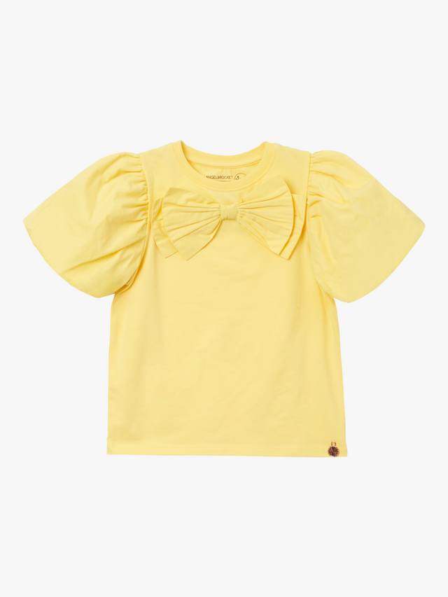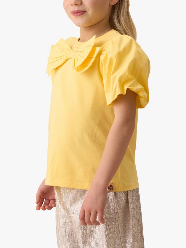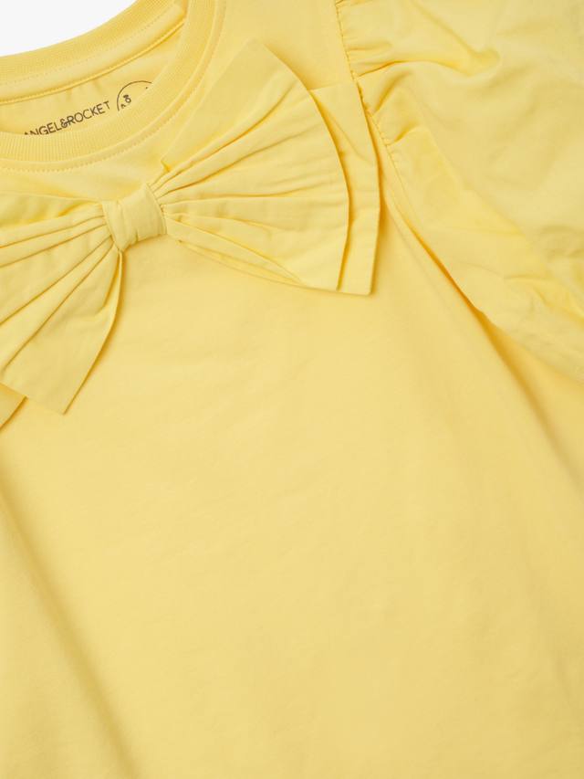 Самая милая футболка, которую вы когда-либо видели. Супермягкий хлопковый трикотаж роскошного жёлтого цвета с очаровательным тканым рукавом-буфом и большим бантом. Великолепно!