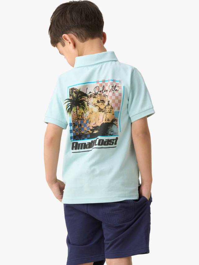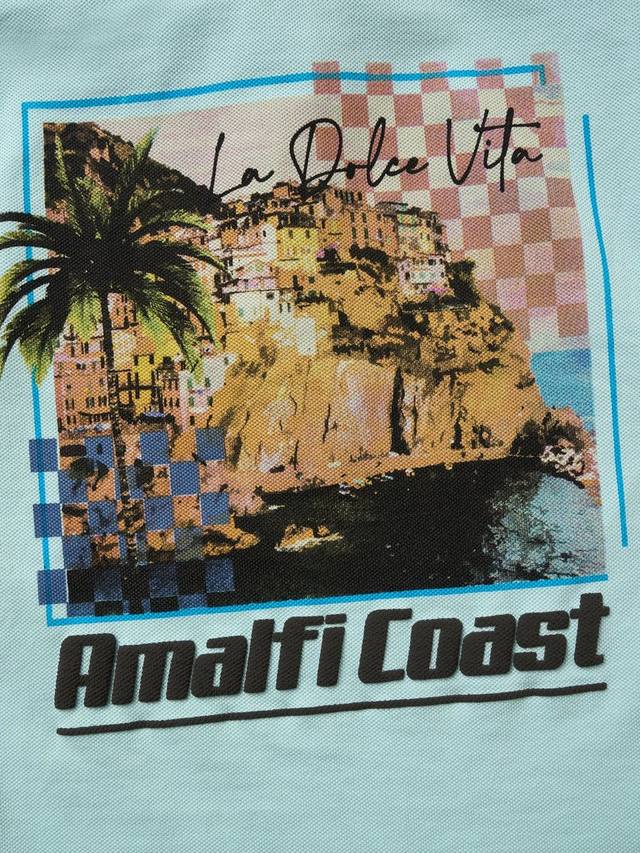 Новый подход к умению! Наше поло из джерси пике отличается контрастным воротником и стильным принтом на груди. Отличительная черта — рисунок на спине, вдохновлённый побережьем Амальфи, который добавляет стильности. Идеальное сочетание элегантности и повседневности для вашего летнего гардероба.