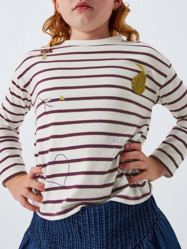 Игривая интерпретация классического хлопкового полосатого джерси с забавной вышивкой.
