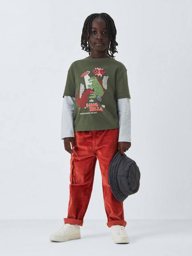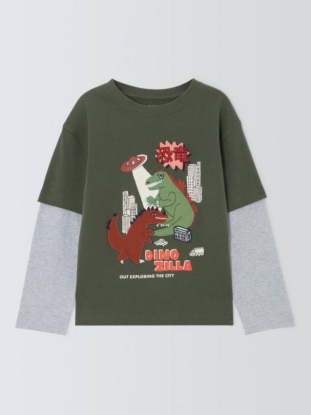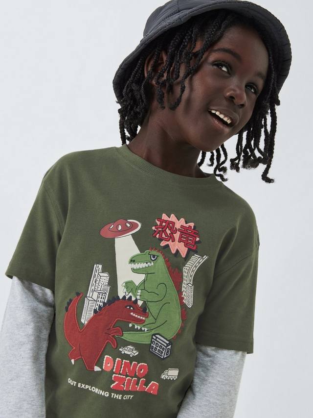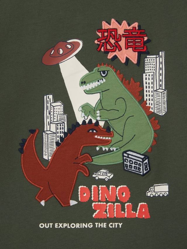 Этот топ из чистого хлопкового трикотажа с рукавами-фонариками украшен забавным вышитым и графическим принтом в виде динозавров.
