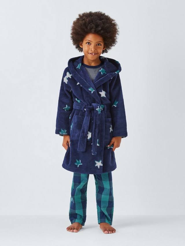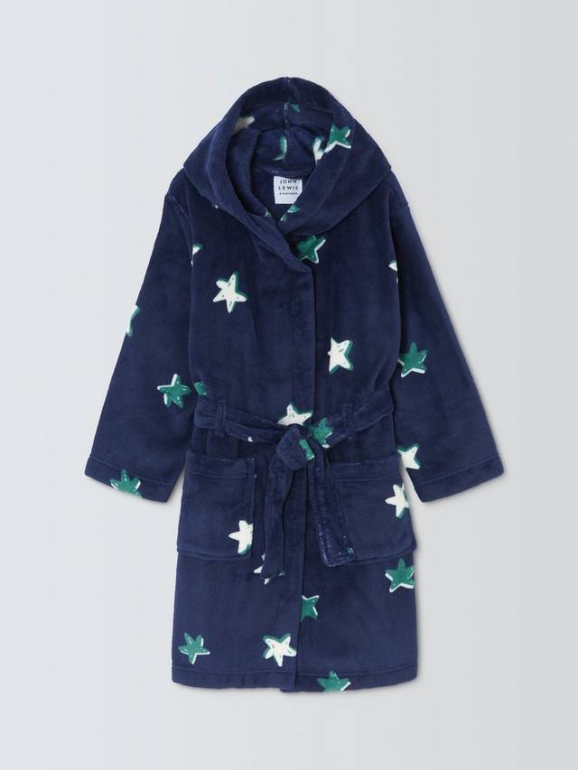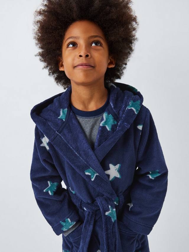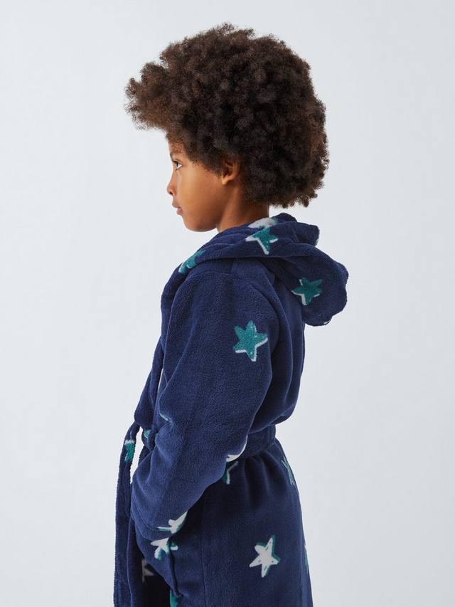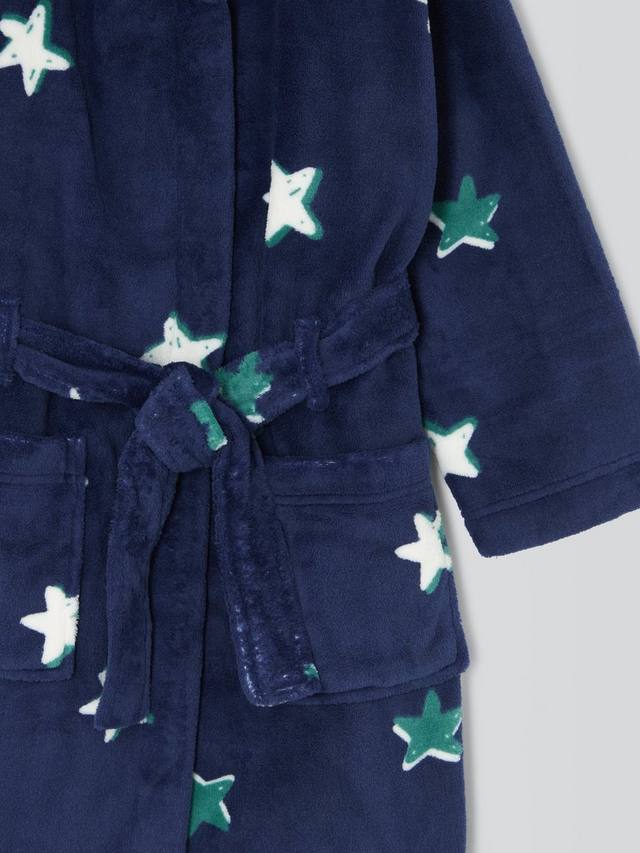 Мягкий флисовый халат с рисунком в виде звезд по всей поверхности.
