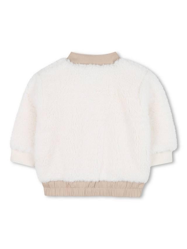Этот кардиган на подкладке, изготовленный из мягкого искусственного флиса, застегивается на молнию, имеет фирменную этикетку и эластичный подол для плотной посадки.