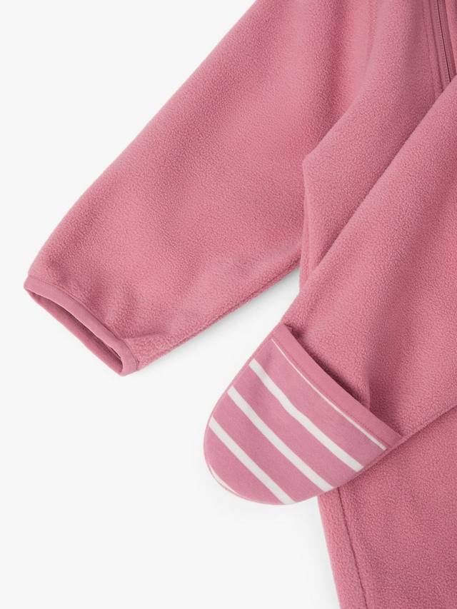 Этот флисовый комбинезон защитит малыша от ветра и дождя. Изготовлен из 100% переработанного полиэстера, водоотталкивающий, что делает его идеальным для лёгкого дождя, а подкладка из органического хлопкового джерси обеспечит дополнительный комфорт. Он оснащен двойными молниями с защитой подбородка и ветрозащитным клапаном для защиты от холода.
