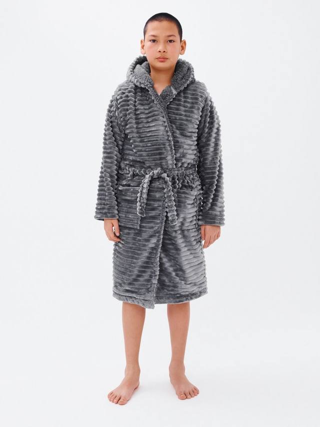 Этот уютный халат из супермягкого вельветового флиса имеет капюшон, пушистую подкладку и два передних кармана.